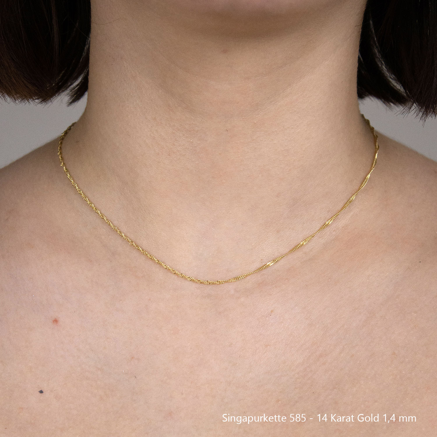 Die Singapurkette ist eine sehr exclusiv wirkende gedrehte Halskette. Sie wird meist von Frauen getragen, und kann mit oder ohne Anhänger verwendet werden. Das Licht wird bei der Singapurkette aus allen Richtungen reflektiert wodurch diese Kette besonders elegant funkelt. Sie wird deshalb gerne zu besonderen Anlässen getragen.