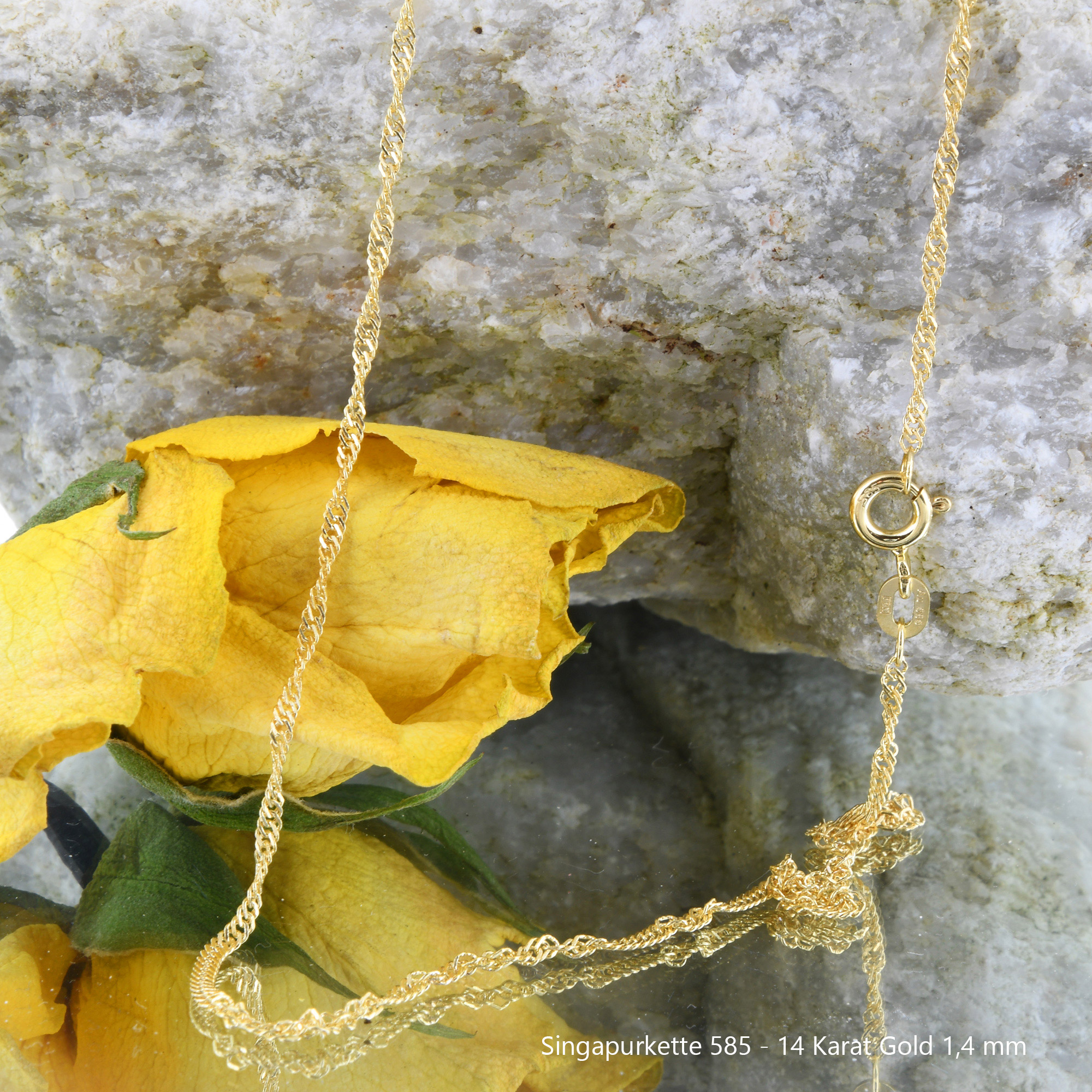 585 - 14 Karat Gold Singapurkette 1,4 mm Ring Verschluss