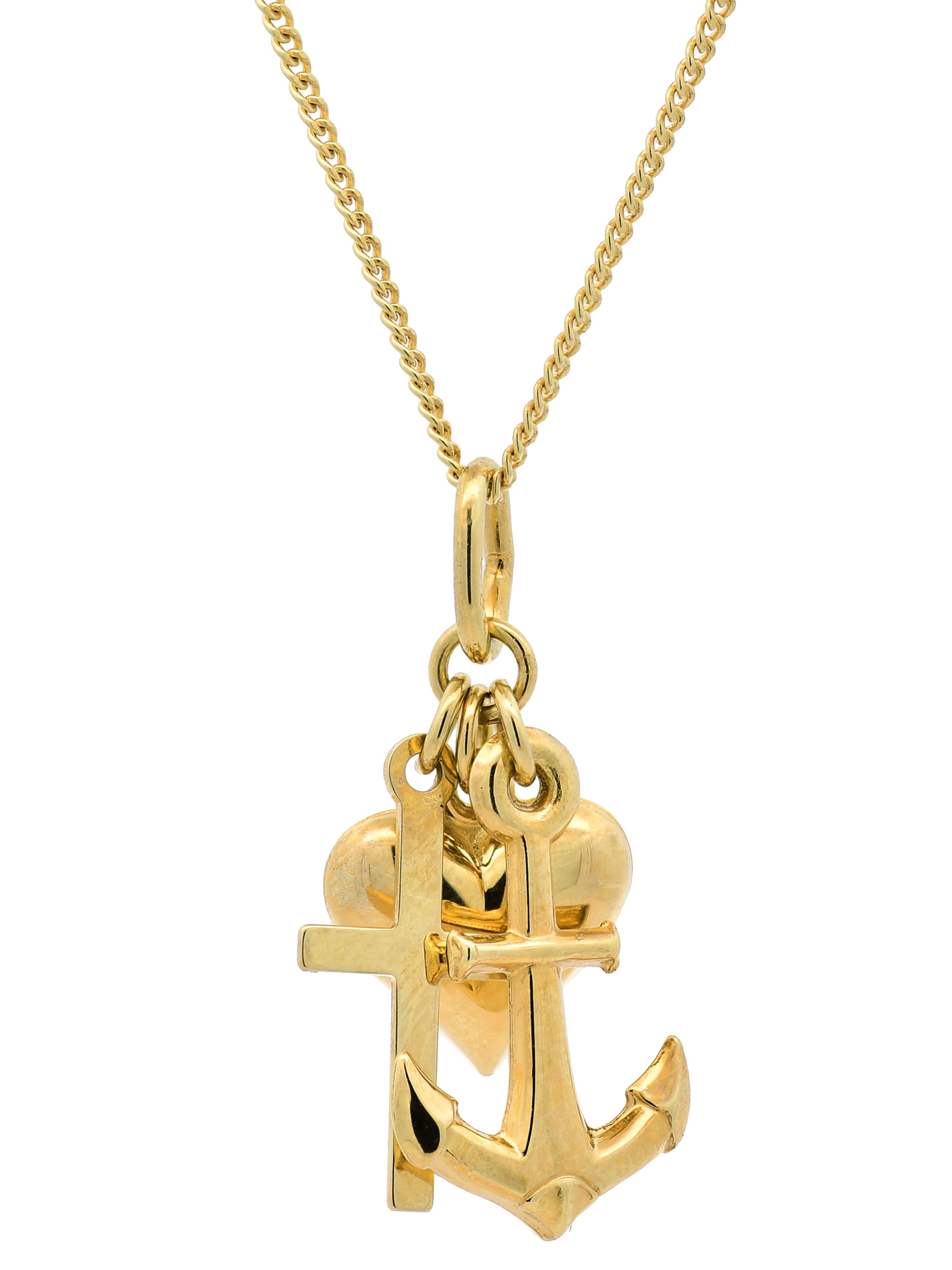 Anhänger Glaube-Liebe-Hoffnung 585 Gold mit vergoldeter Silberkette