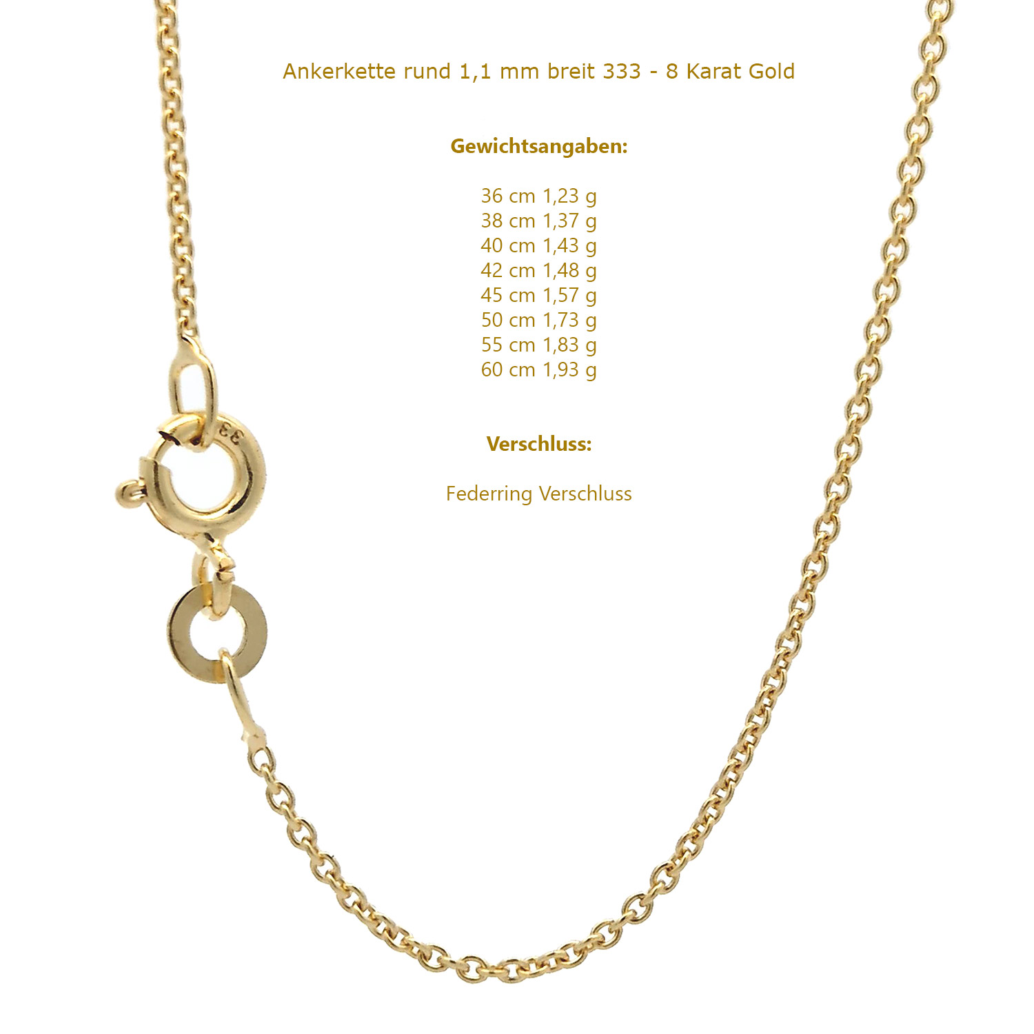 Edle feine dünne filigrane Goldkette massiv 333-8 Karat Gold Halskette, 36-60 cm - lang - 0,8 mm breit - Gelbgold von höchster Qualität – Made in Germany.