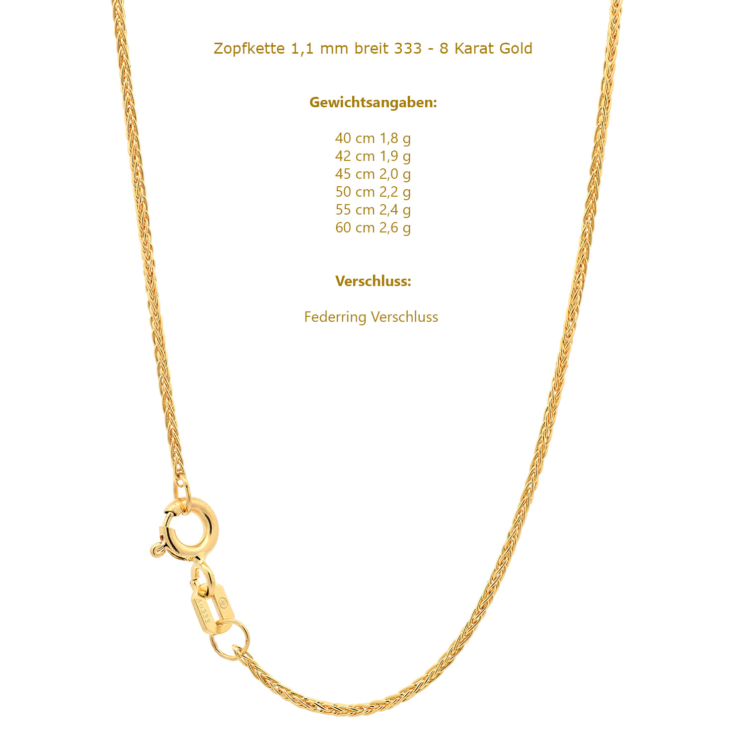 Edle feine dünne filigrane Goldkette massiv 333-8 Karat Gold Halskette, 36-60 cm - lang - 0,8 mm breit - Gelbgold von höchster Qualität – Made in Germany.