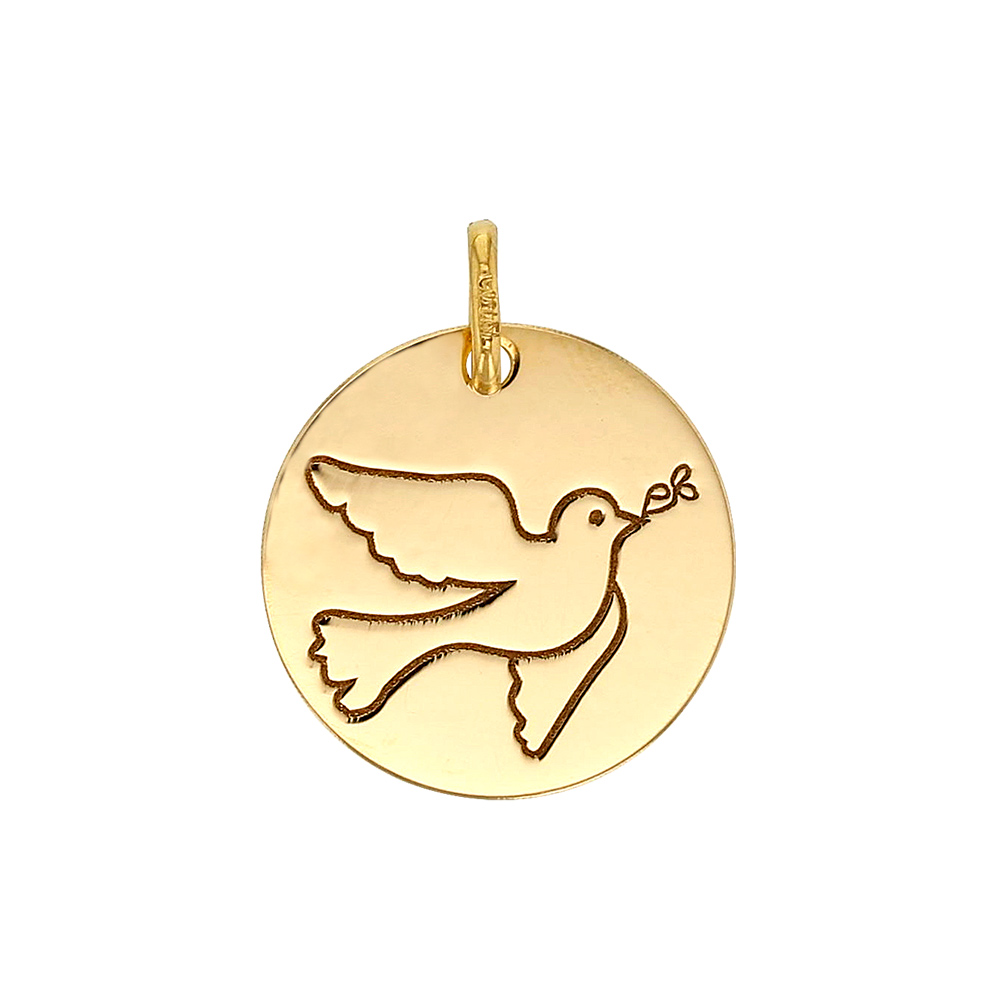 Hochwertiger Gold Anhänger Kettenanhänger mit Friedenstaube Gravur aus massiv 375 - 9 Karat Gelbgold.