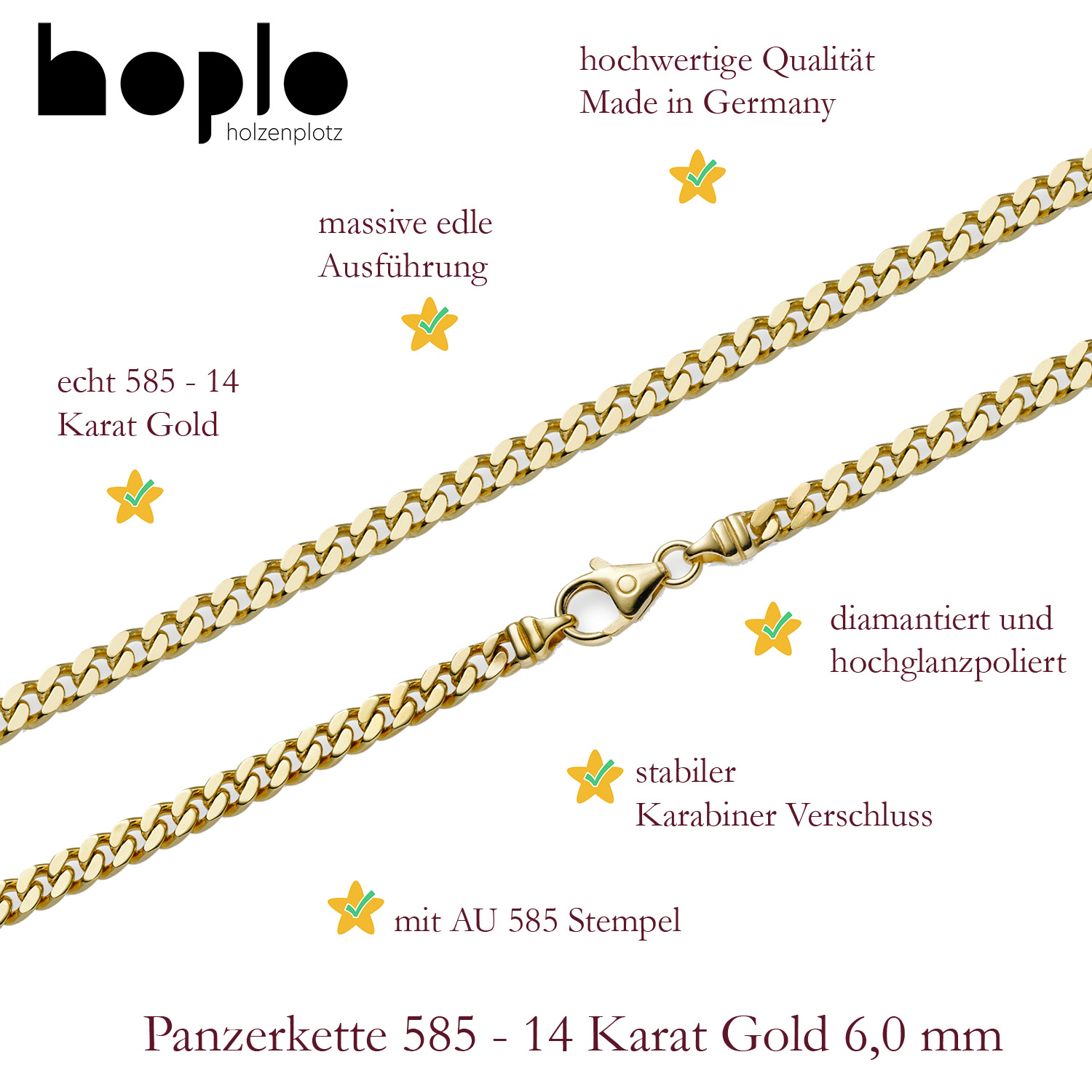 Edle massive Goldkette Panzerkette 6,0 mm Armkette aus 585 - 14 Karat Gelbgold von höchster Qualität Made in Germany.