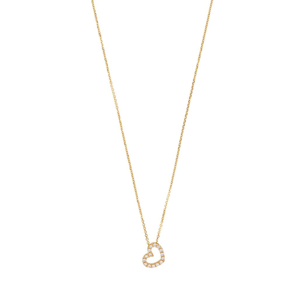 Goldkette Collier Herz mit Zirkonia massiv 375-9 Karat Gold 42 cm