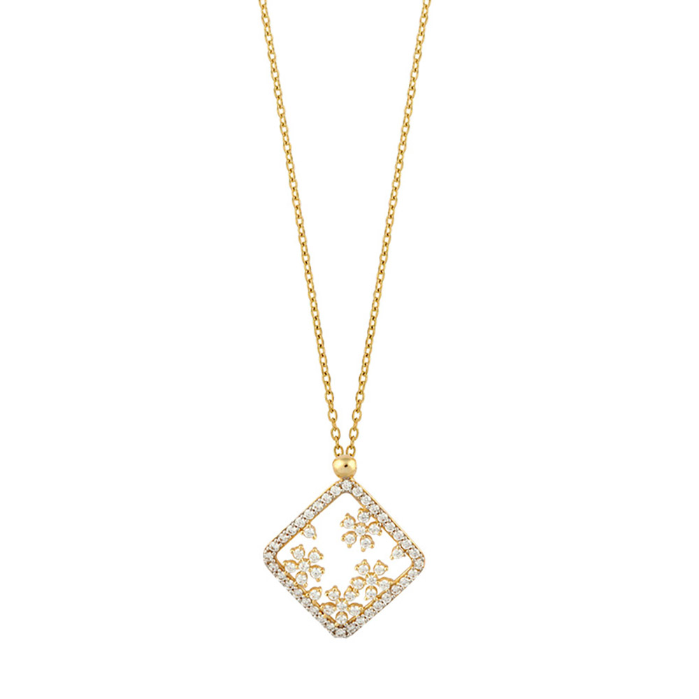 Edle Goldkette Collier mit Zirkonia aus 375 - 9 Karat Gold - Gelbgold von höchster Qualität – Made in Germany.