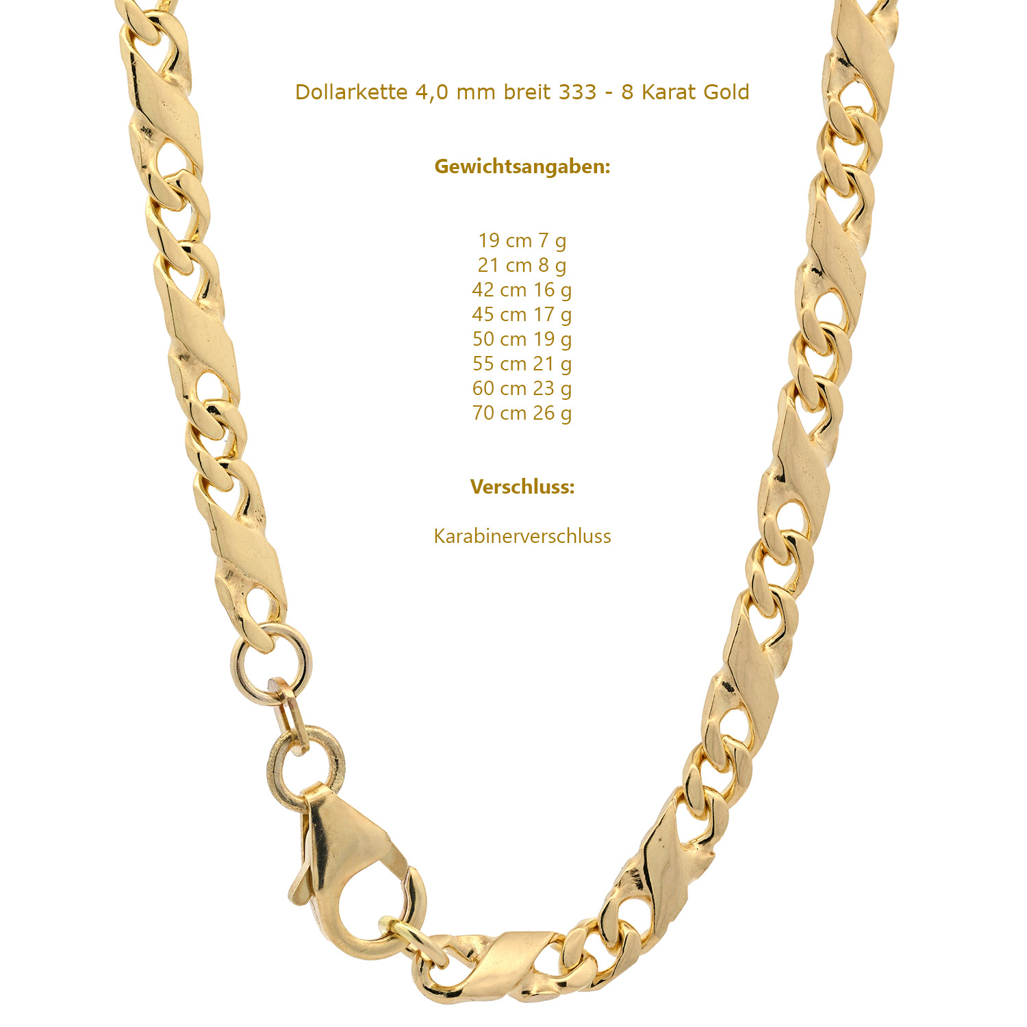 Goldkette Dollarkette Halskette Breite 4,0 mm massiv 333-8 Karat Gold