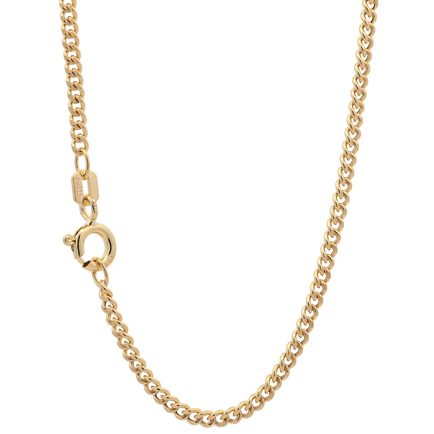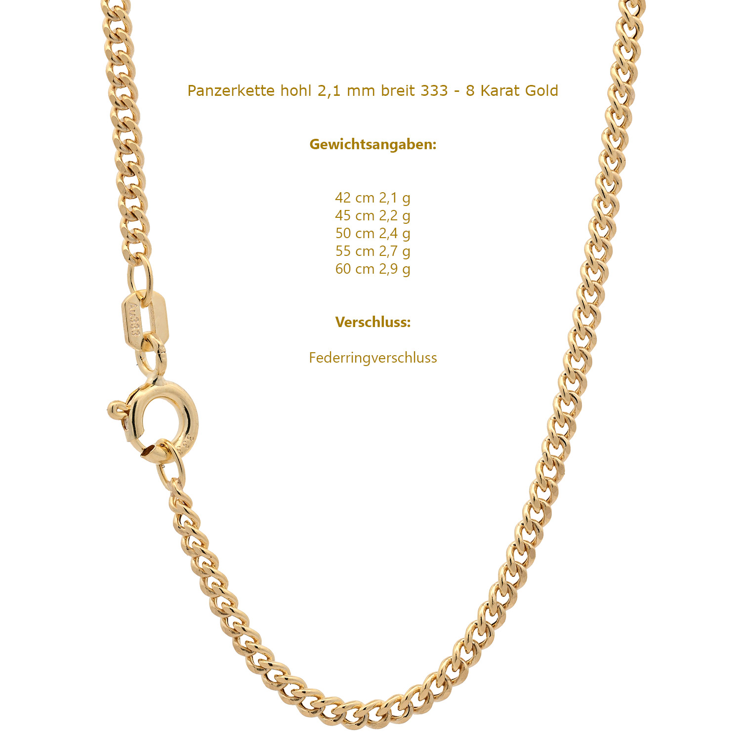 Edle massive Goldkette Panzerkette hohl aus 333 - 8 Karat Gold - 2,1 mm breit - Gelbgold von höchster Qualität – Made in Germany.