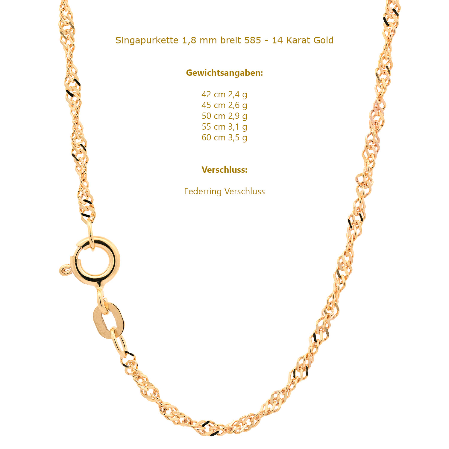 Edle massive Goldkette Singapurkette 1,8 mm Halskette aus 585 - 14 Karat Gelbgold von höchster Qualität – Made in Germany - Länge nach Wahl