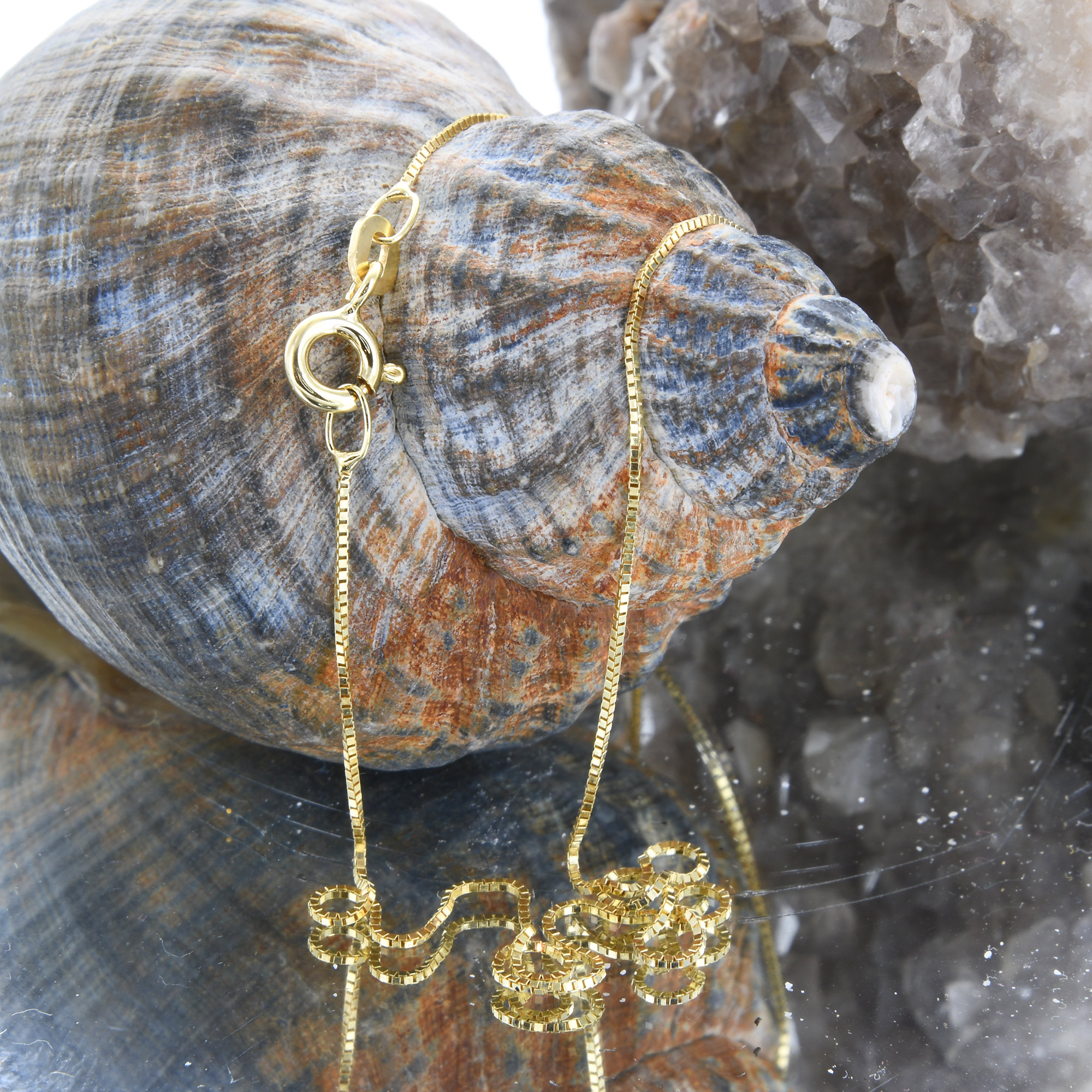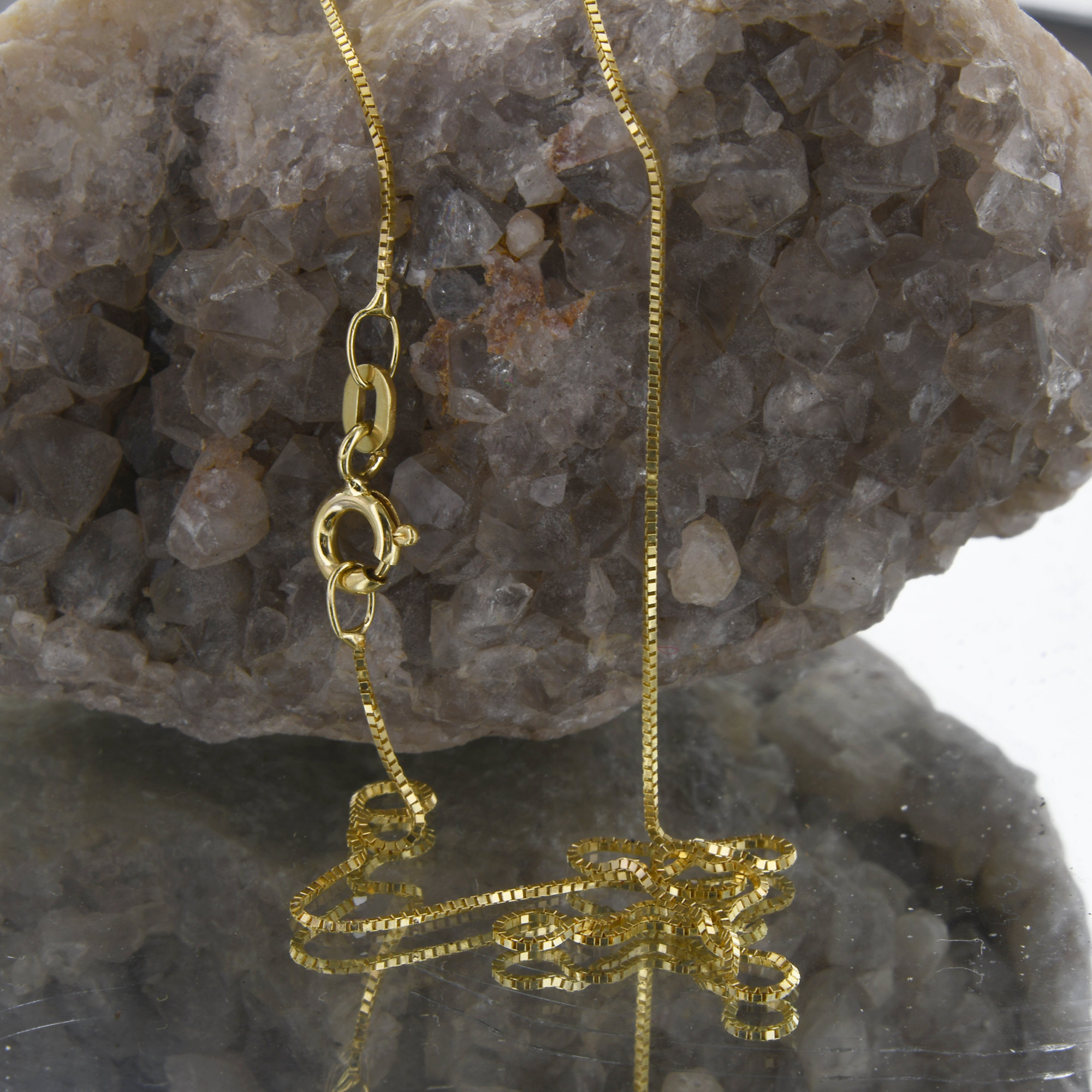 Die Venetianerkette begeistert durch ihre geometrische Einfachheit. Sie besteht aus quadratischen kleinen Kettengliedern und ist sehr flexibel. Die Venetianerkette ist eine robuste, klassische, geschmeidige und regelmässige Kette, die sowohl von Frauen als auch von Männern mit und ohne Anhänger getragen wird. Durch seine langjährige Erfahrung und Kompetenz setzt der Hersteller weltweite Maßstäbe im Bereich Schmuckketten, die kaum zu überbieten sind. Die Ketten zeichnen sich durch präzise Verarbeitung, Langlebigkeit, edler Formgebung und makellosen Oberflächen aus. Lassen auch Sie sich von diesem edlen Produkt verführen.