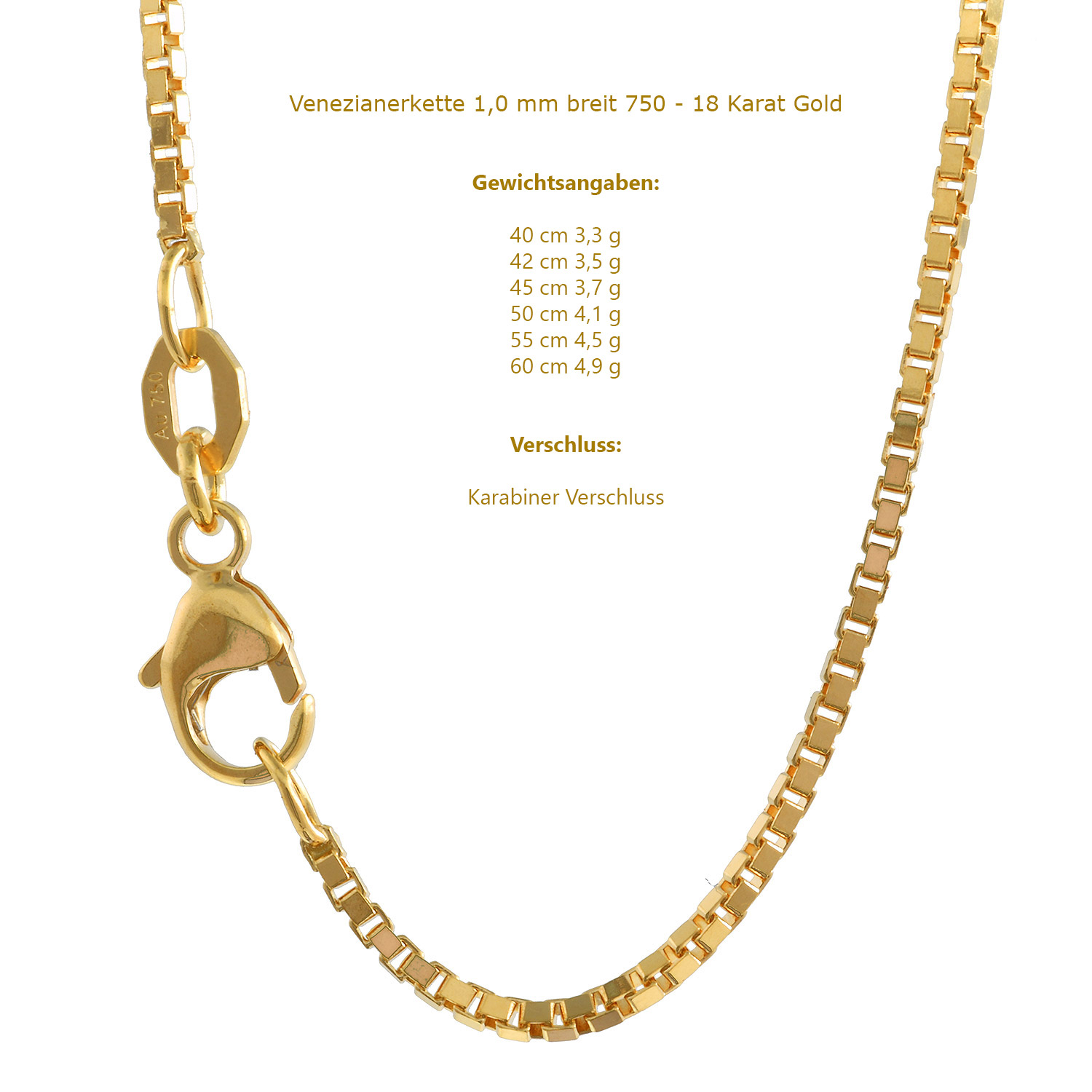 Edle massive Goldketten Venezianerkette Halskette Breite 1,0 mm aus 750 - 18 Karat Gelbgold von höchster Qualität – Made in Germany