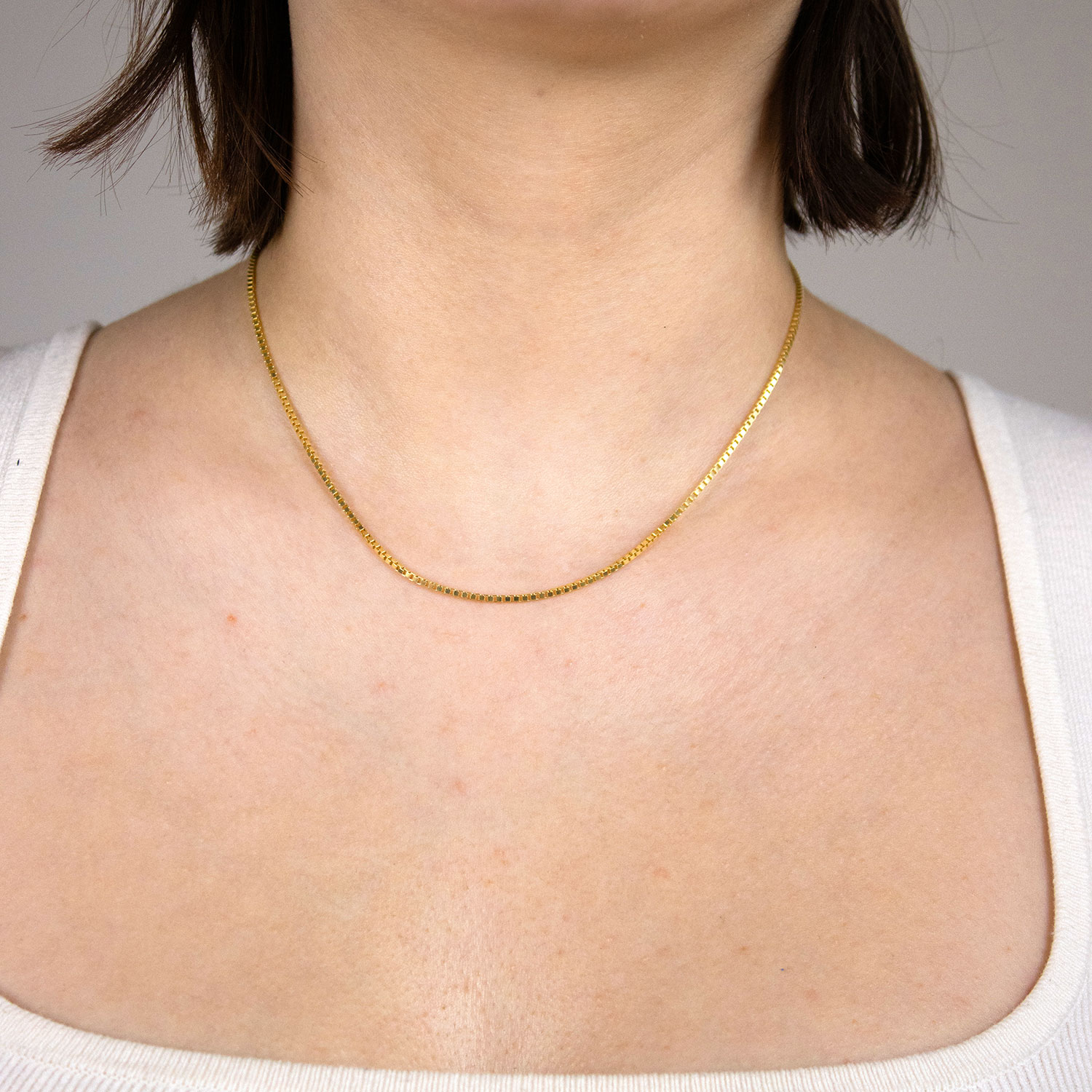 Die Venetianerkette begeistert durch ihre geometrische Einfachheit. Sie besteht aus quadratischen kleinen Kettengliedern und ist sehr flexibel. Die Venetianerkette ist eine robuste, klassische, geschmeidige und regelmässige Kette, die sowohl von Frauen als auch von Männern mit und ohne Anhänger getragen wird.