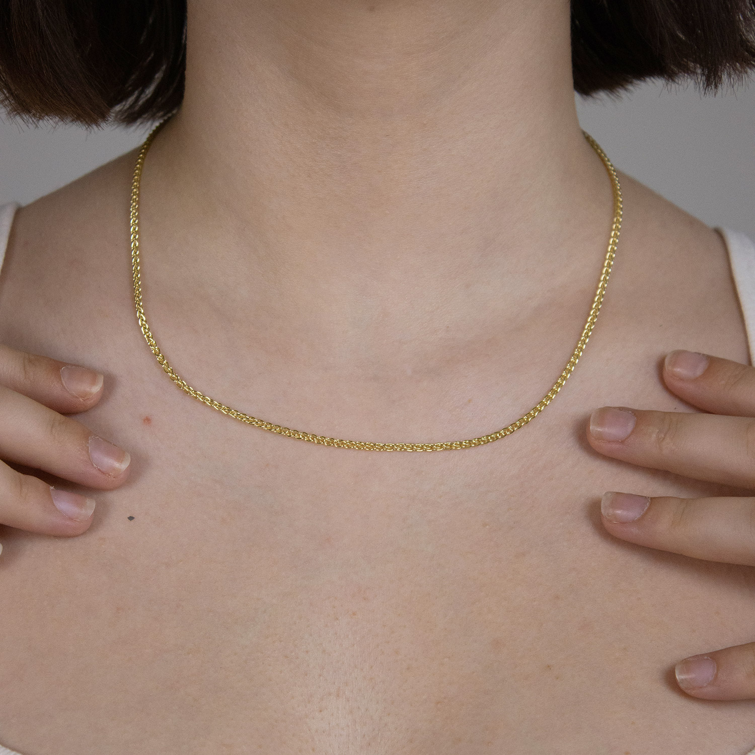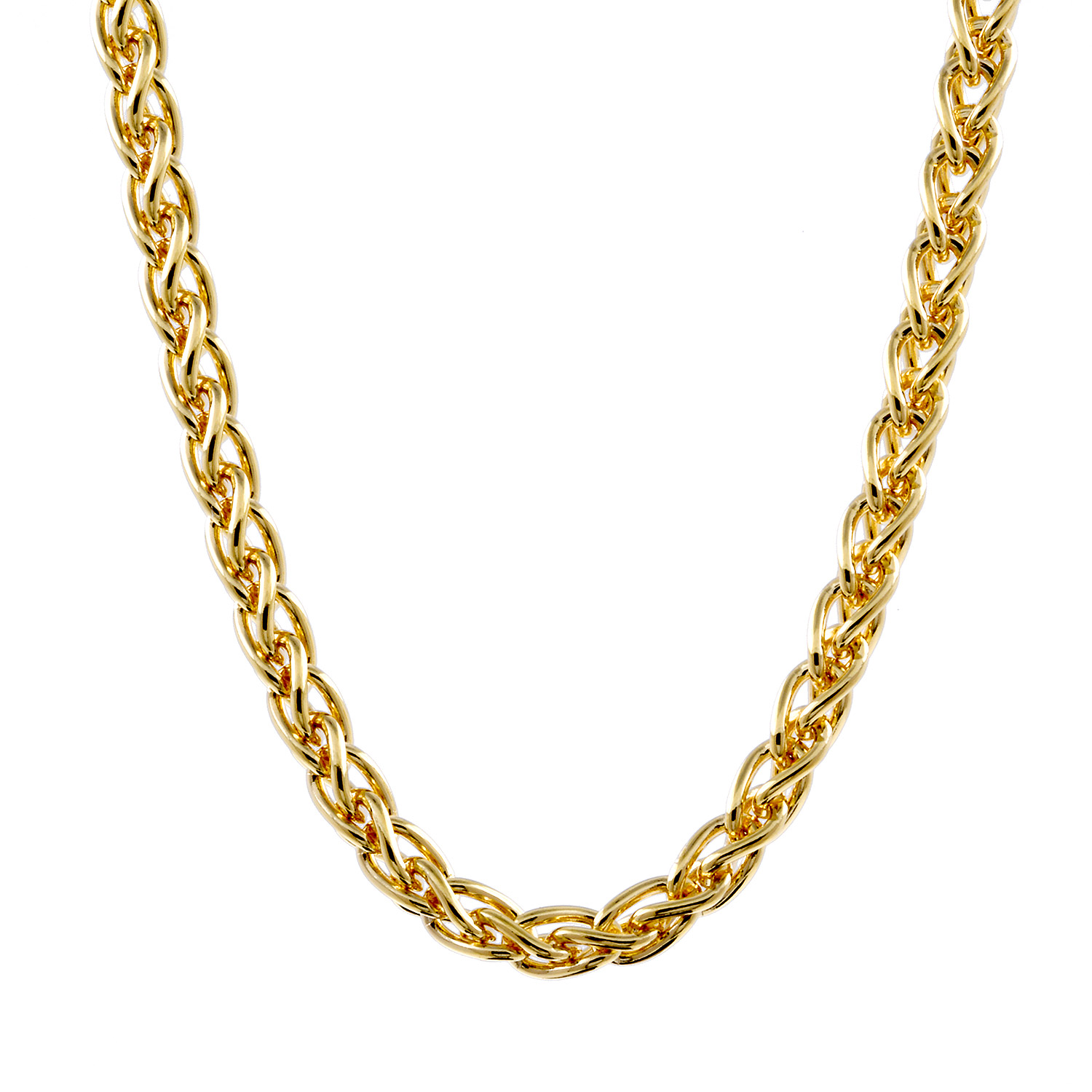 Zopfkette ist eine robuste, klassische elegant geflochtene Kette, die sowohl von Frauen als auch von Männern mit und ohne Anhänger getragen