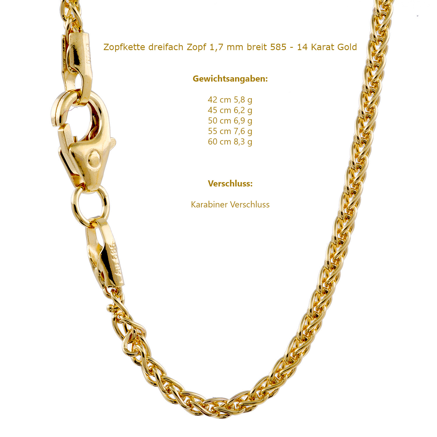 Edle massive Goldketten Zopfkette Halskette Breite 1,7 mm aus 585 - 14 Karat Gelbgold von höchster Qualität – Made in Germany