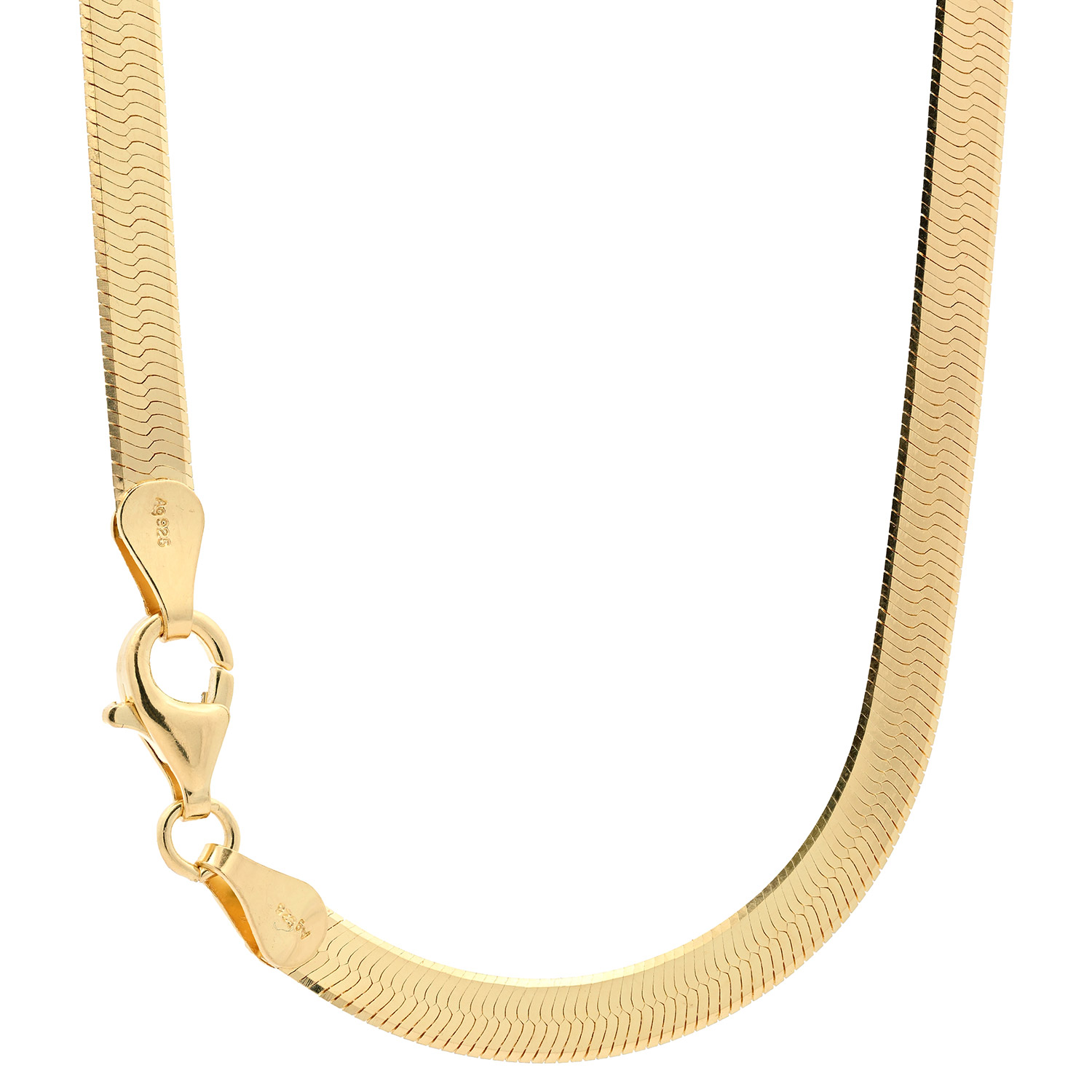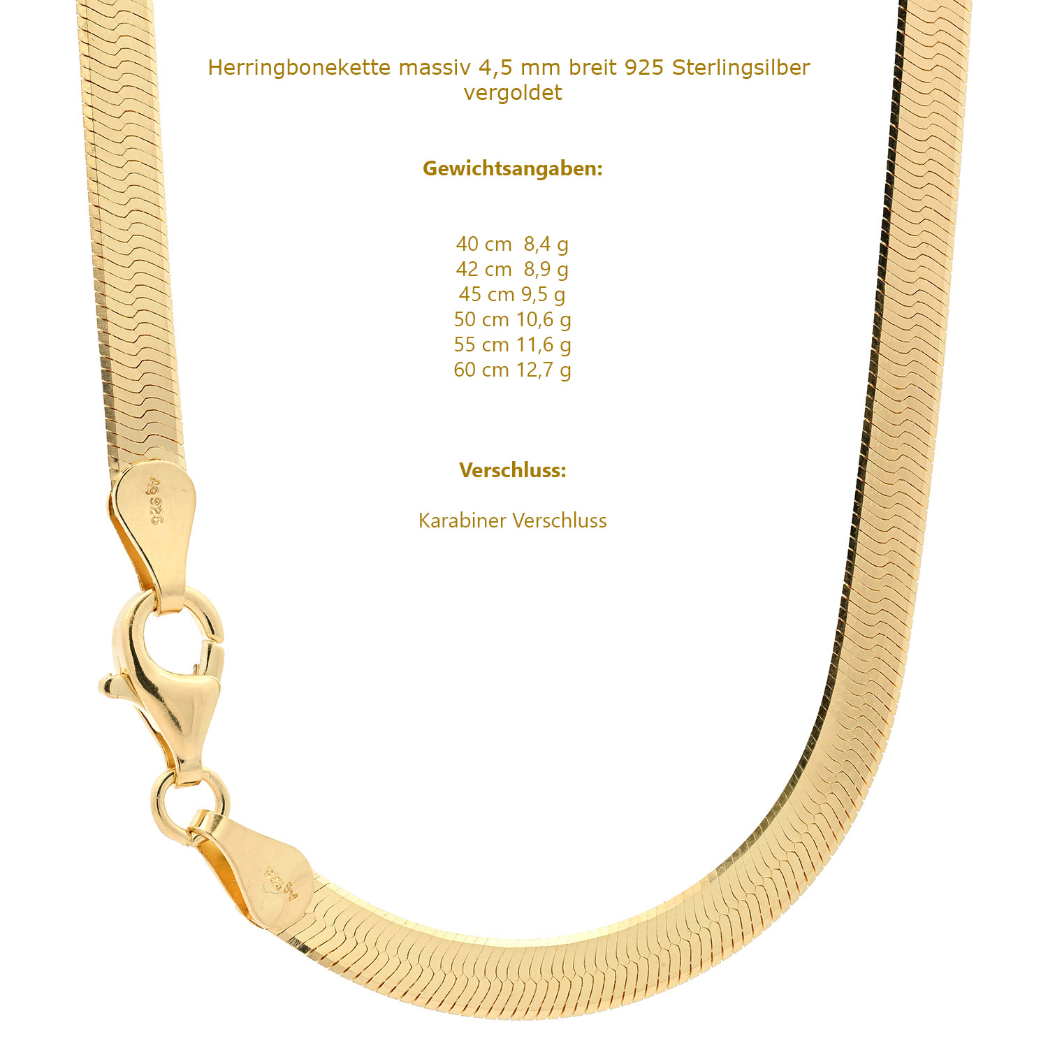 Edle vergoldete Herringbonekette aus massiv 925 Sterlingsilber - 4,5 mm breit - 1,0 µ vergoldet von höchster Qualität – Made in Germany.