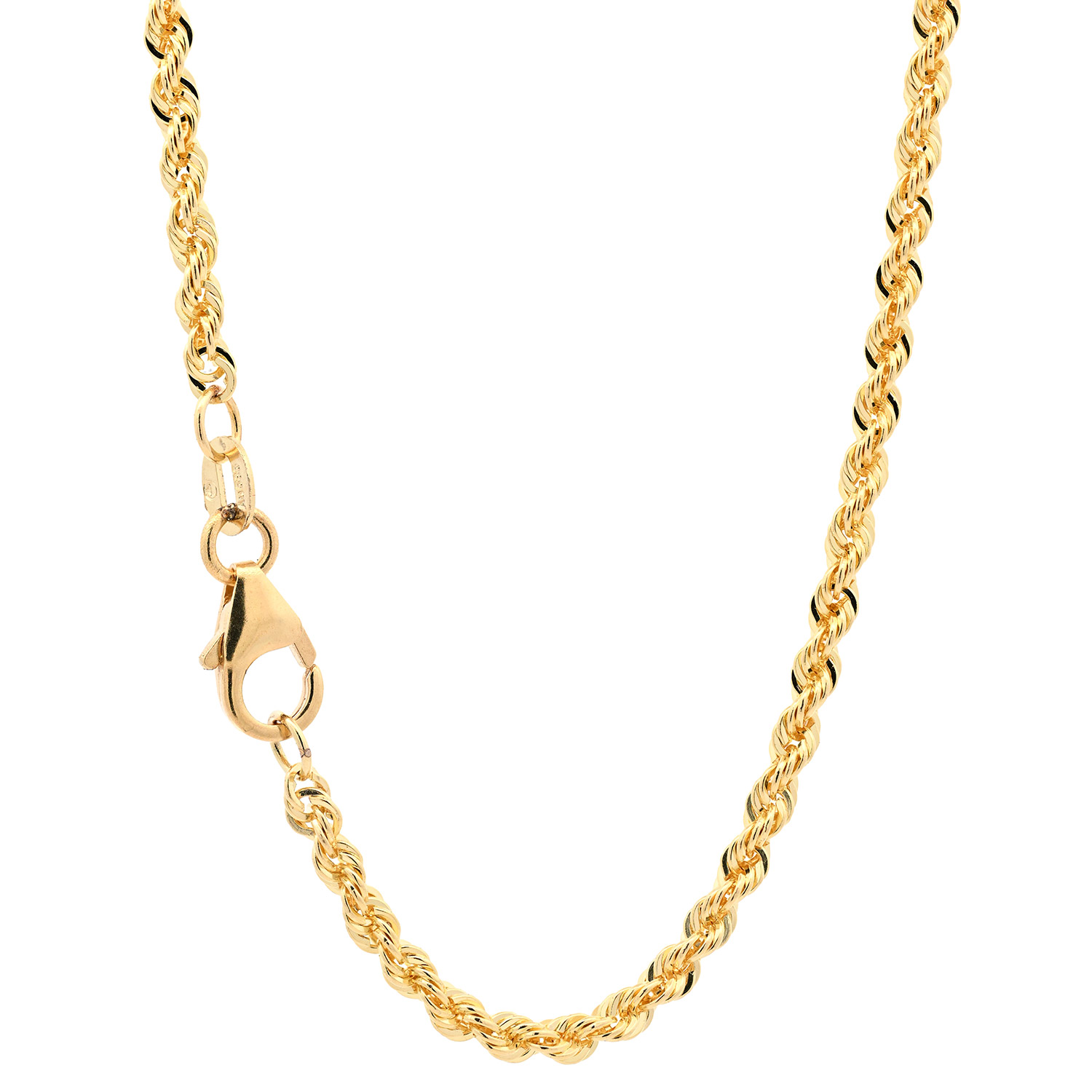 Edle vergoldete Kordelkette aus massiv 925 Sterlingsilber - 3,0 mm breit - 1,0 µ vergoldet von höchster Qualität – Made in Germany.