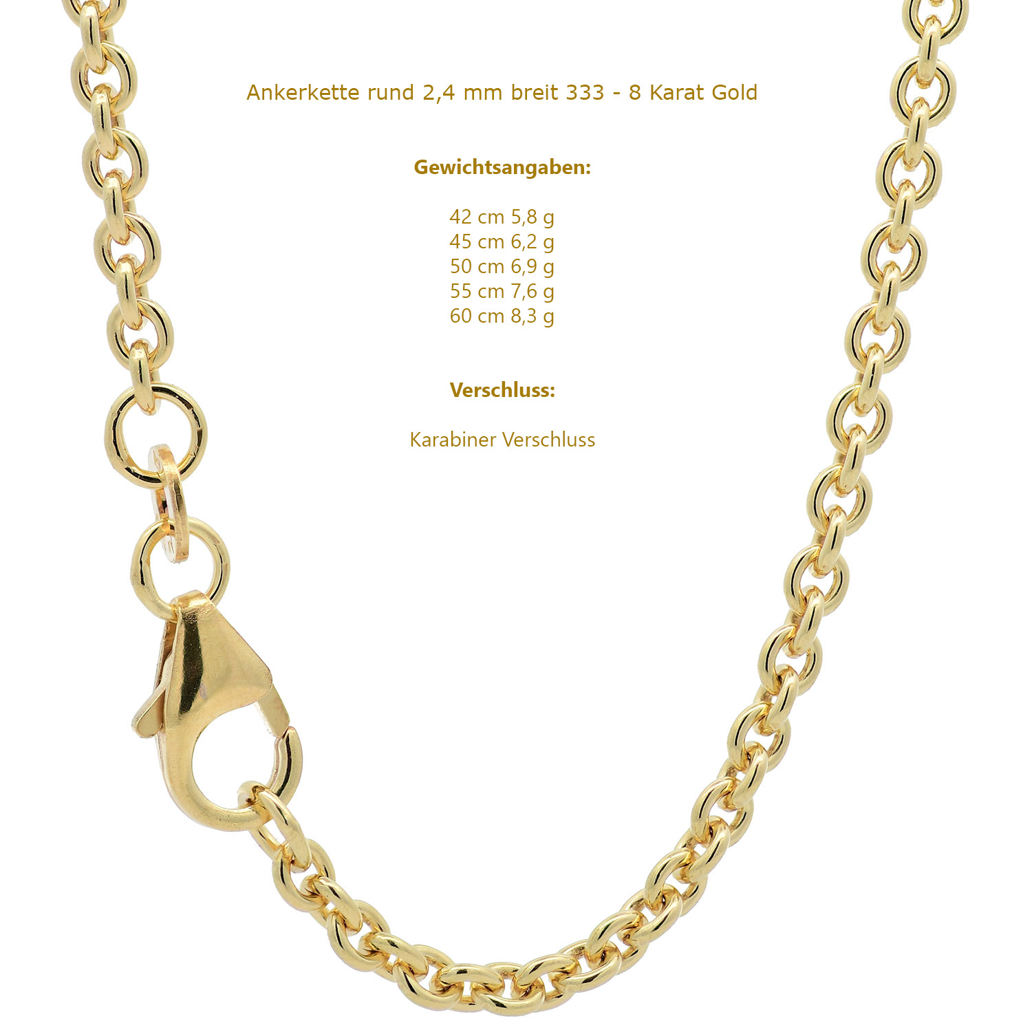 Edle massive Goldketten Ankerketten rund Halskette aus 333 - 8 Karat Gelbgold von höchster Qualität – Made in Germany