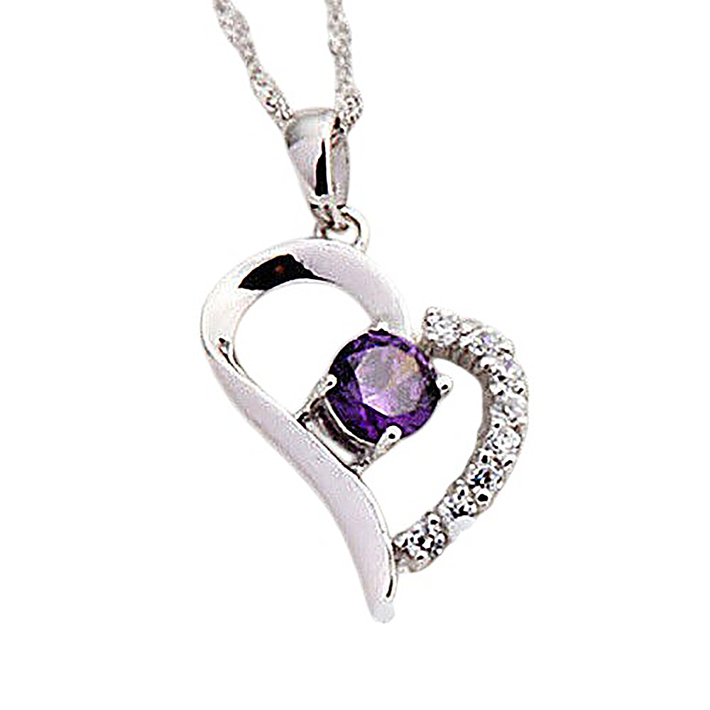 Herz Anhänger violetter Zirkonia Crystal mit Singapurkette 925 Silber