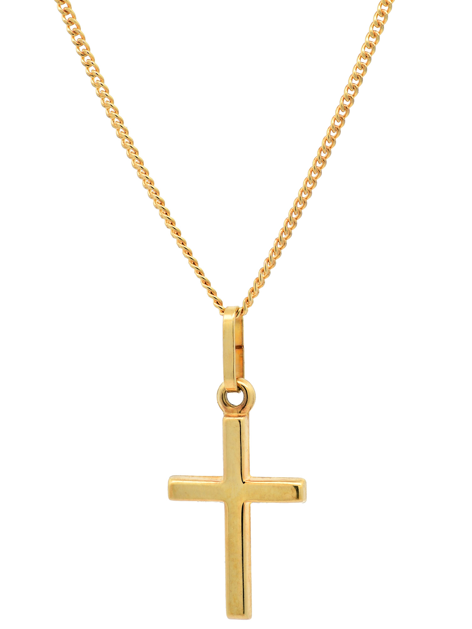 Gold Anhänger Kreuz mit Goldkette massiv 585 - 14 Karat Gold