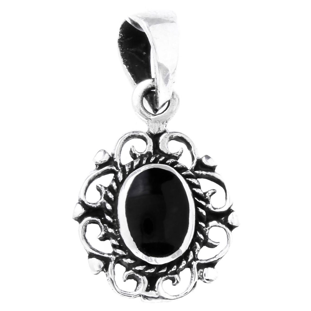 Anhänger mit Onyxstein klein Schmuck 925er Silber 20x11mm