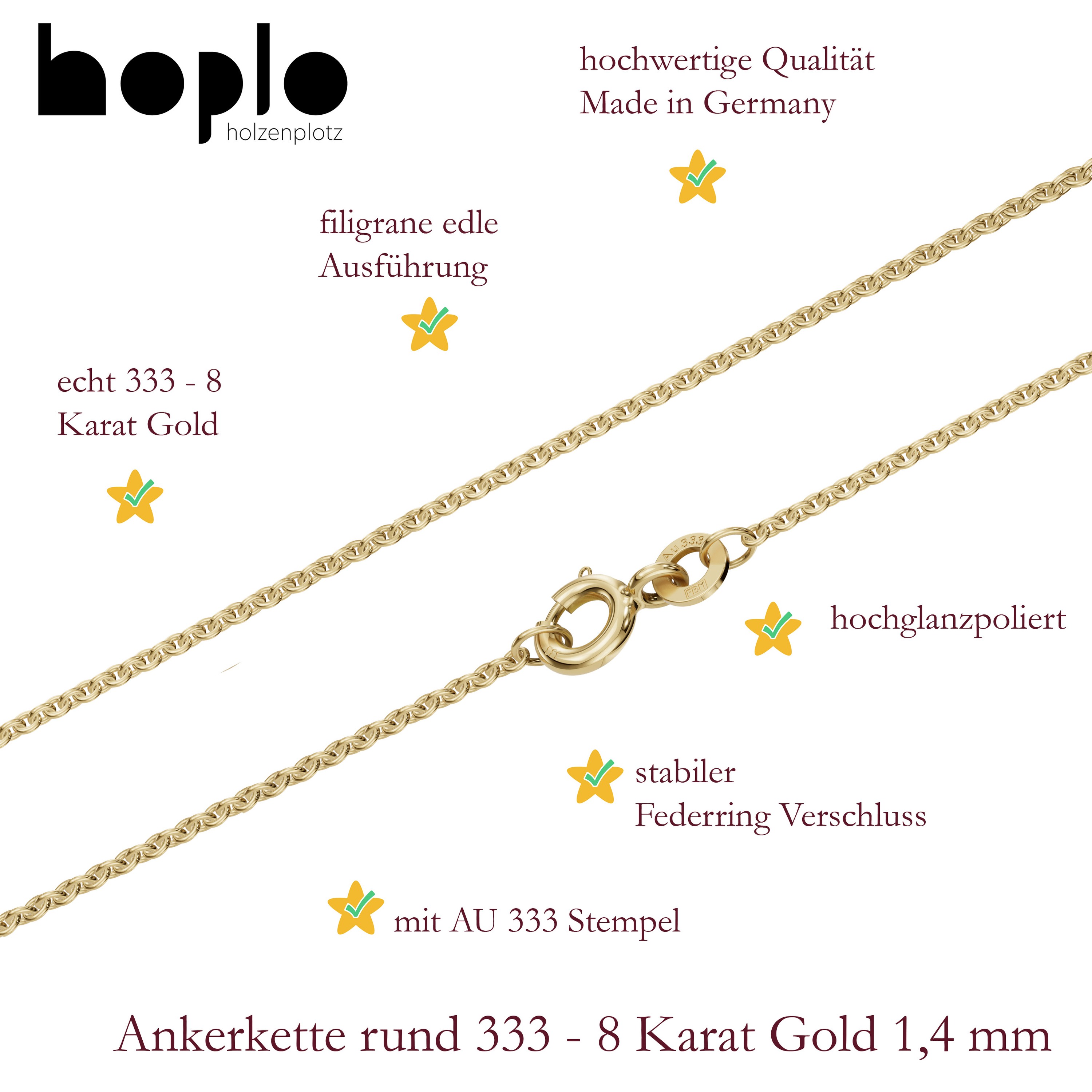Edle massive Goldkette Ankerkette rund 1,4 mm Halskette aus 333 - 8 Karat Gelbgold von höchster Qualität Made in Germany - Länge nach Wahl