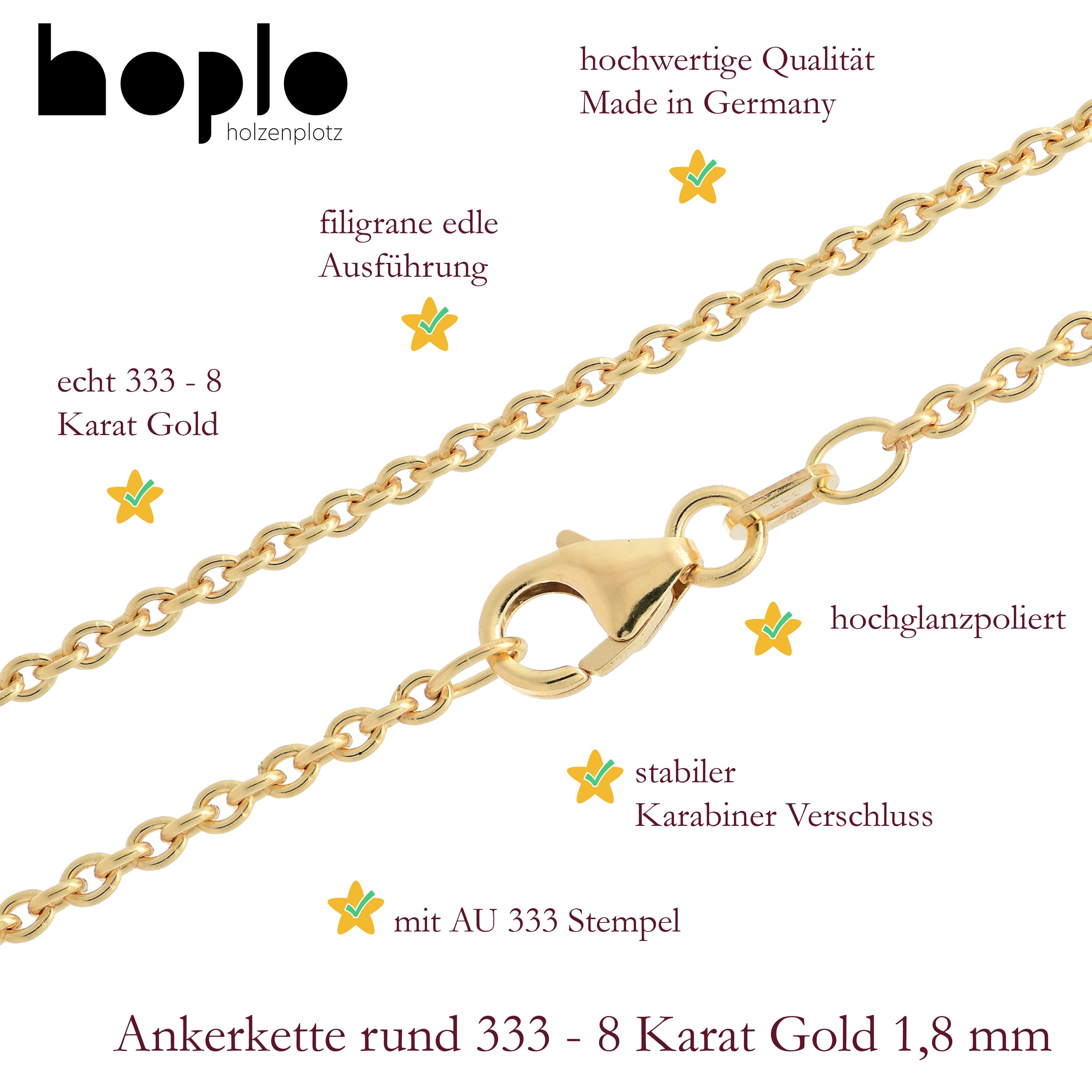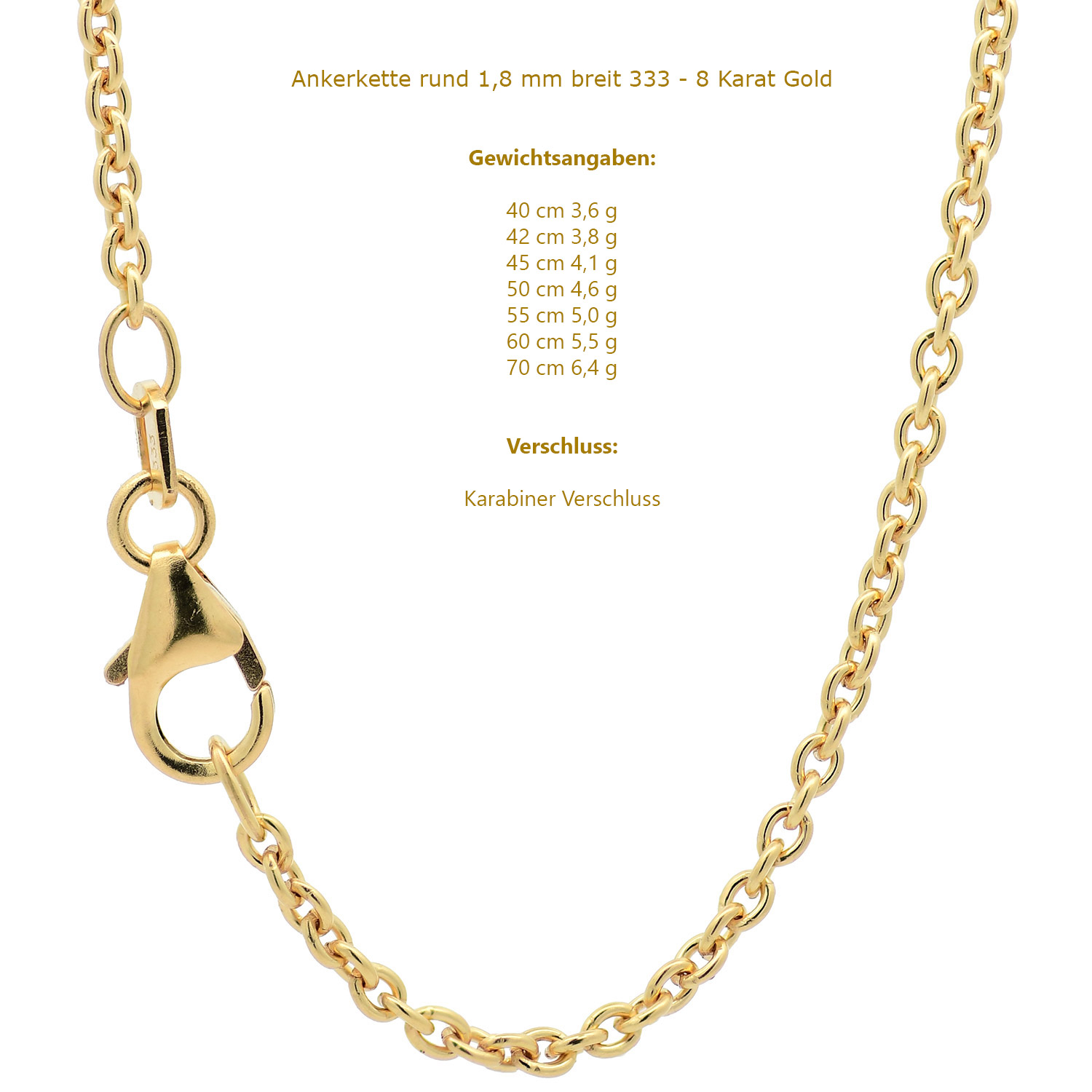 Edle massive Goldkette Ankerkette rund 1,8 mm Halskette aus 333 - 8 Karat Gelbgold von höchster Qualität Made in Germany - Länge nach Wahl