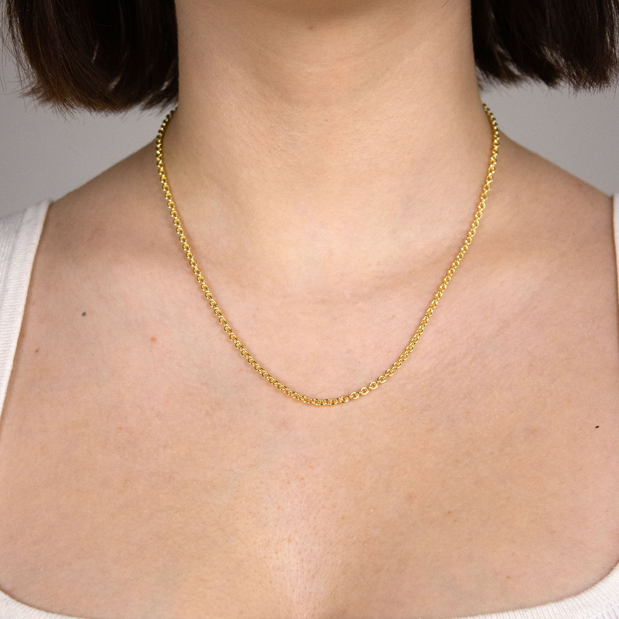 Die Ankerkette gehört zu den beliebtesten Ketten hierzulande. Bei der runden Ankerkette sind die Ringe oval wie bei einer echten Ankerkette. Die Ankerkette wird sowohl von Männern als auch von Frauen getragen.