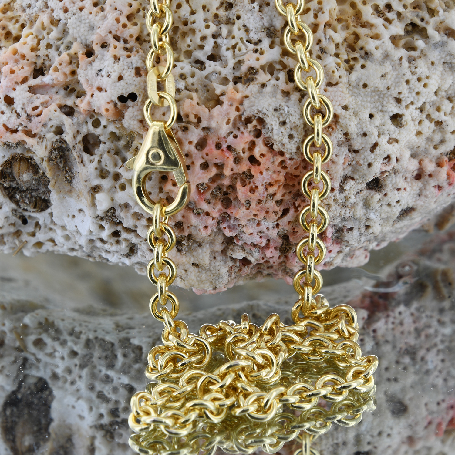 Bei unseren Ketten handelt es sich um eine solide, edle, massive und sehr hochwertige Ausführung in Juwelierqualität. Natürlich ist die Kette gestempelt. Die Ankerkette rund ist absolut präzise gearbeitet und sehr bequem zu tragen. Die Ankerkette ist durch eine Oberflächenbehandlung anlaufgeschützt und danach hochglanzpoliert für ein noch edleres Erscheinungsbild.