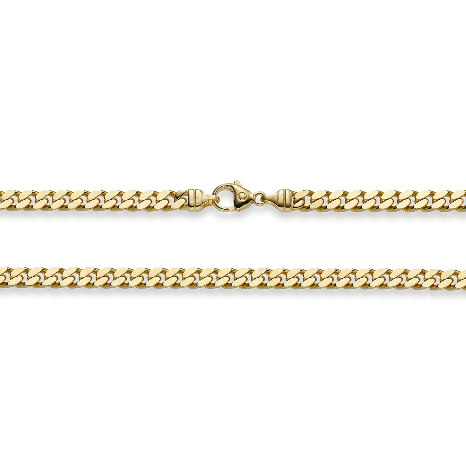Die Panzerkette gehört zu den beliebtesten Ketten hierzulande. Sie wird sowohl von Männern als auch von Frauen getragen. Die einzelnen Panzerketten unterscheiden sich durch ihre unterschiedlichen Schliffe, durch die Höhe der Kette, durch den Abstand und die Größe der Ringe und natürlich durch ihren Goldgehalt. Wenn man sich die Panzerkette etwas genauer anschaut, erkennt man wie diese hergestellt ist. Die Ringe, aus welchen so eine Panzerkette gefertigt sind, werden sozusagen flach gelegt. Daher liegt die Panzerkette besonders angenehm auf der Haut. Es gibt keine unebenen Stellen, keine harte Kanten welche an der Haut reiben könnten. Bei unseren Ketten handelt es sich um eine solide, edle, massive und sehr hochwertige Ausführung in Juwelierqualität. Natürlich sind die Ketten gestempelt. Die Panzerkette ist absolut präzise gearbeitet und sehr bequem zu tragen. Sie ist diamantiert. Dabei wird die Kette mittels rotierender Diamanten geschliffen und erhält dadurch einen noch edleren Glanz. Alle die Ketten sind durch eine Oberflächenbehandlung anlaufgeschützt und danach hochglanzpoliert für ein noch edleres Erscheinungsbild.