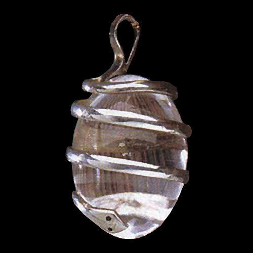 Anhänger mit Bergkristall. Ein Amulett, das einlädt und hilft, der Schlange zu folgen, die sich nach unten windet, um in die verborgenen Reiche der Traumzeit einzudringen. Der Bergkristall in Eiform stellt das Licht dar, das uns auf unserer Reise leuchtet, aber auch den Schatz, den wir zu finden hoffen.