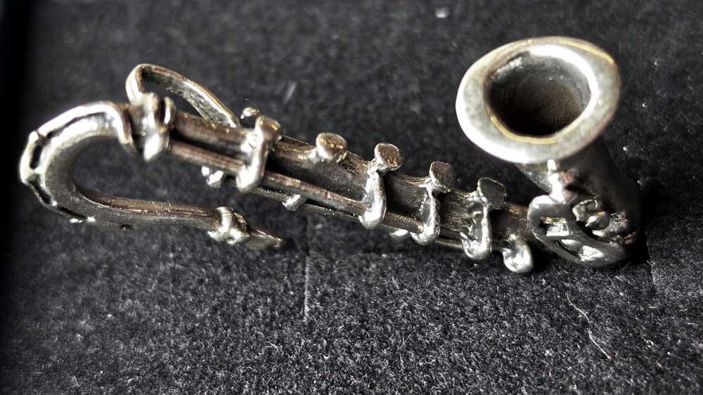 Sehr schöner detailliertere Saxophon Anhänger. Öse ist an der Seite - siehe zweites Bild