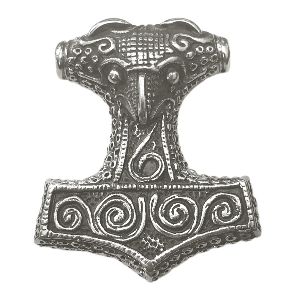 Der Schonenhammer, eins der berühmtesten Fundstücke aus der Wikingerzeit, Originalfundort: Schonen/Schweden, stammt aus der Zeit um 1000 n.Chr..Reichlich verziert mit Raubvogelkopf, massiv gearbeitet