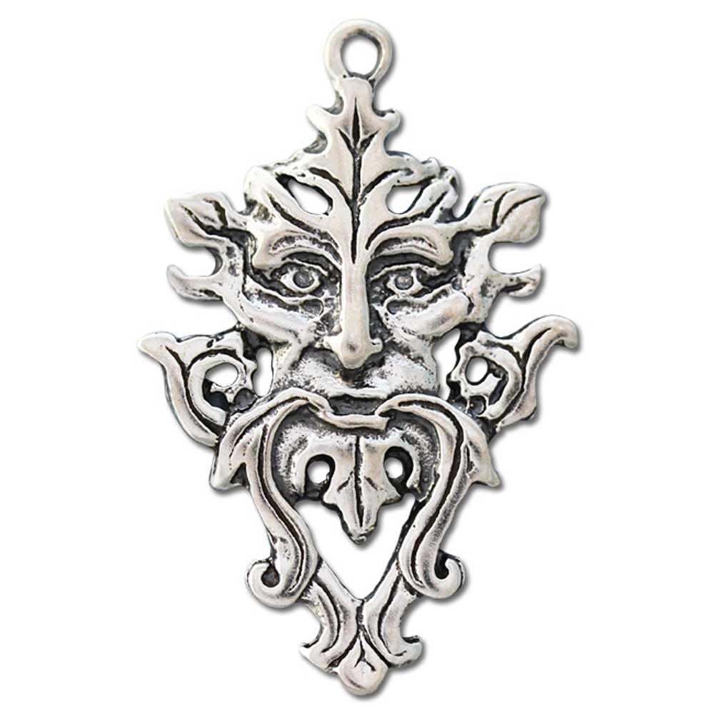 Green Man Schmuck Anhänger versilbert mit Kette Satinbeutel 22 x 35 mm